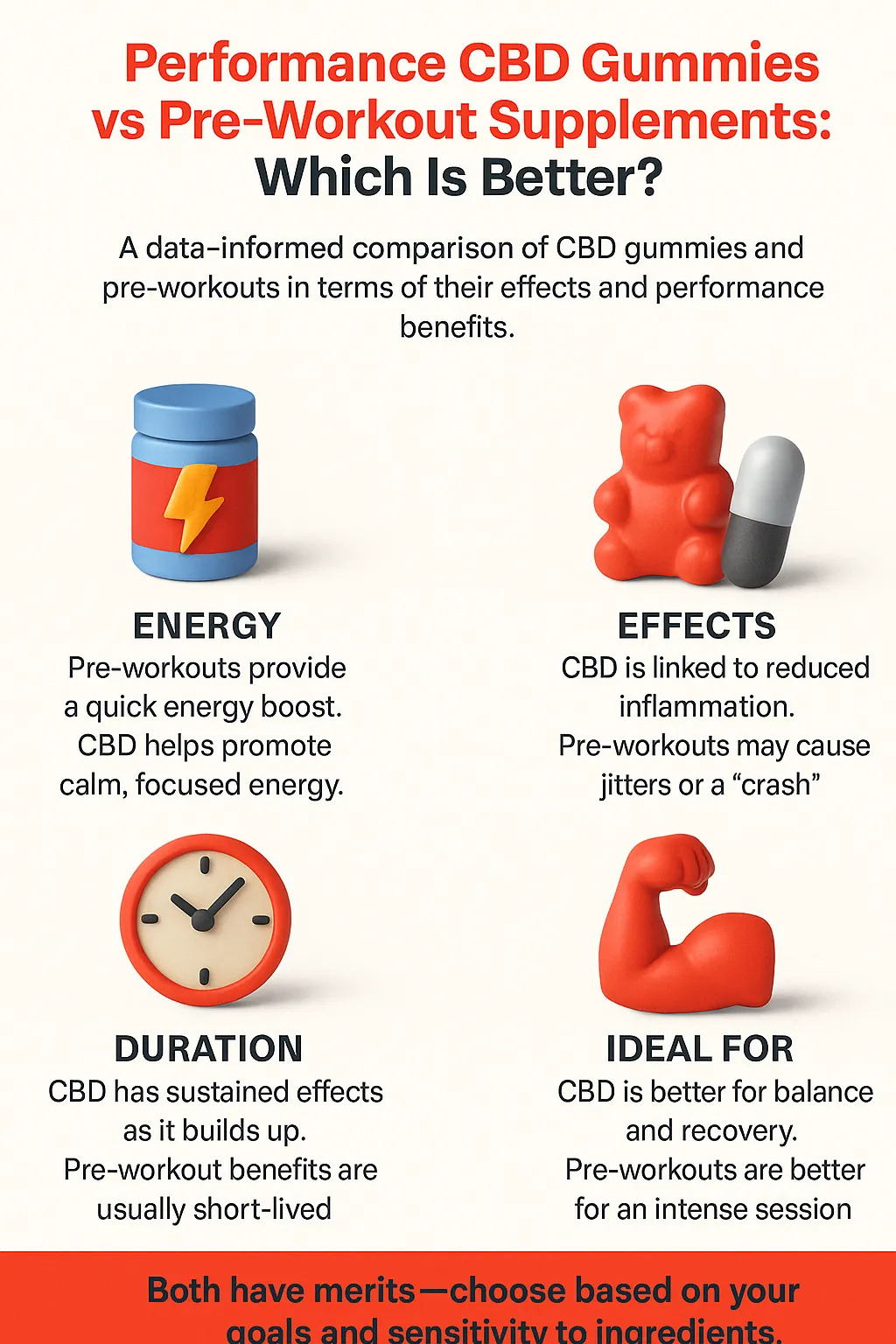 While both CBD gummies and pre-workout supplements aim to improve performance, they work through entirely different biological pathways — and the results depend on what the user truly needs.